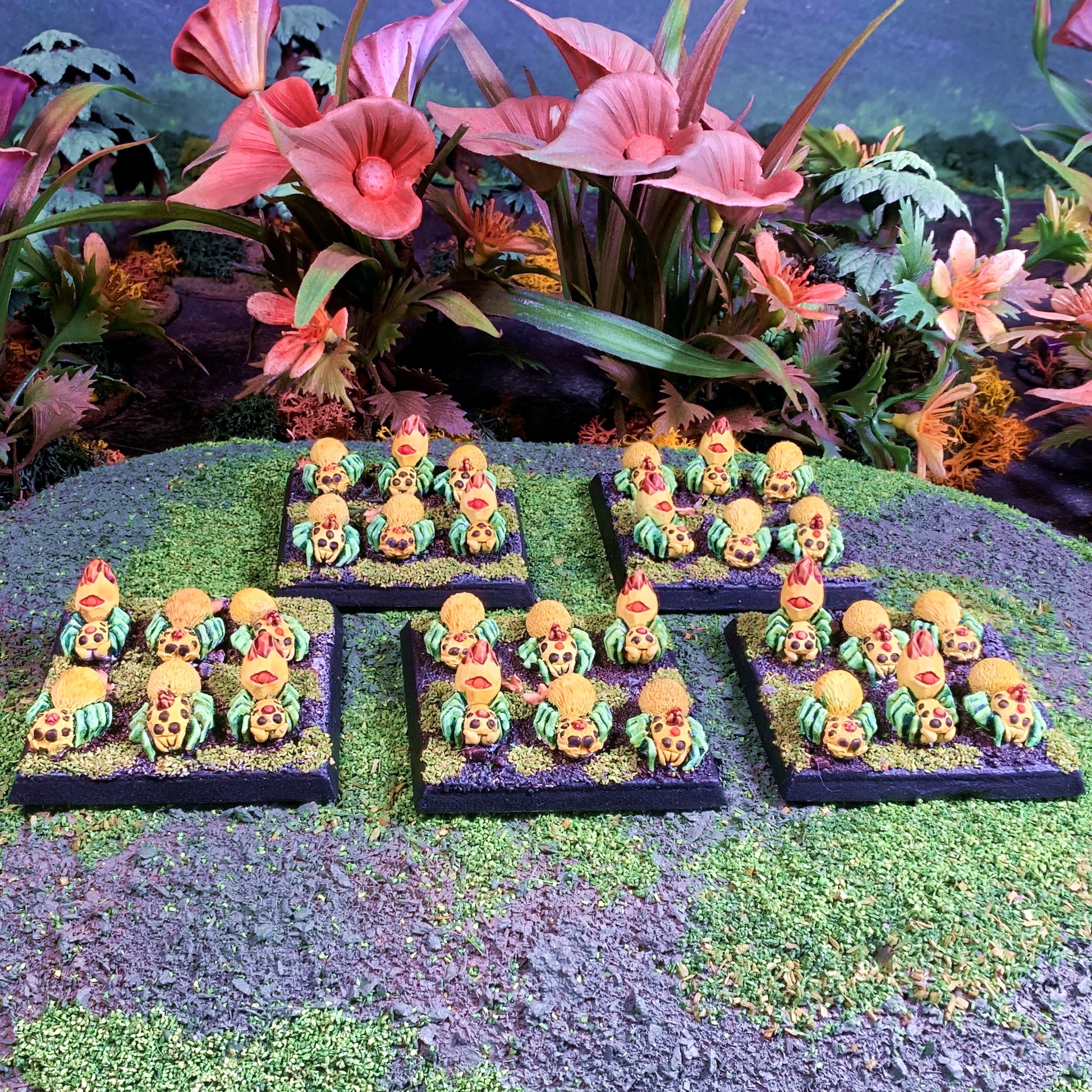 Suggested basing shown in pictures. Bases are not included. Bases shown are 40mm square and 40mm round.